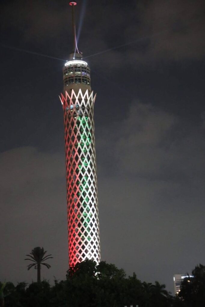 تزيين برج القاهرة بعلم مصر وإضاءته احتفالاً بافتتاح المتحف المصري الكبير