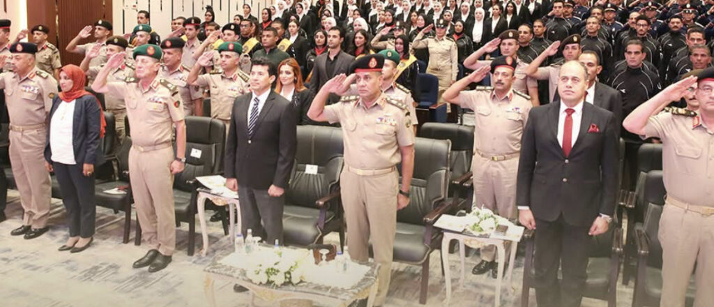 فى إطار حرص القوات المسلحة على التعاون مع مختلف وزارات ومؤسسات الدولة لتدريب وتأهيل الكوادر البشرية بكافة المجالات ، نظمت الأكاديمية العسكرية المصرية حفل ختام المُلتقى العلمى والفنى لمُدربى المشروع القومى للياقة البدنية والذى تم تنفيذه بالتعاون مع وزارة الشباب والرياضة وذلك بعد إنتهاء فترة تأهيلهم داخل الأكاديمية .