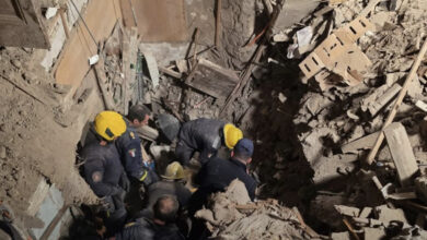 انهيار جزء خلفي لعقار مكون من 3 طوابق في منطقة الجمالية